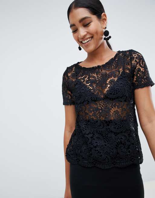 Kanten Top Met Korte Mouw 14054666 Zwart Vila